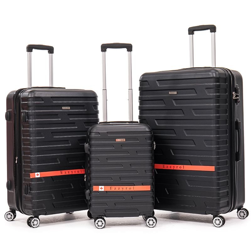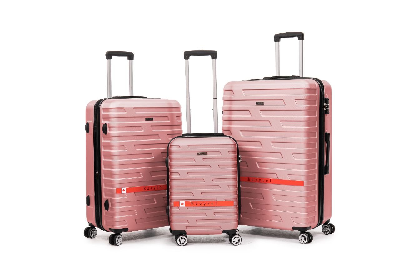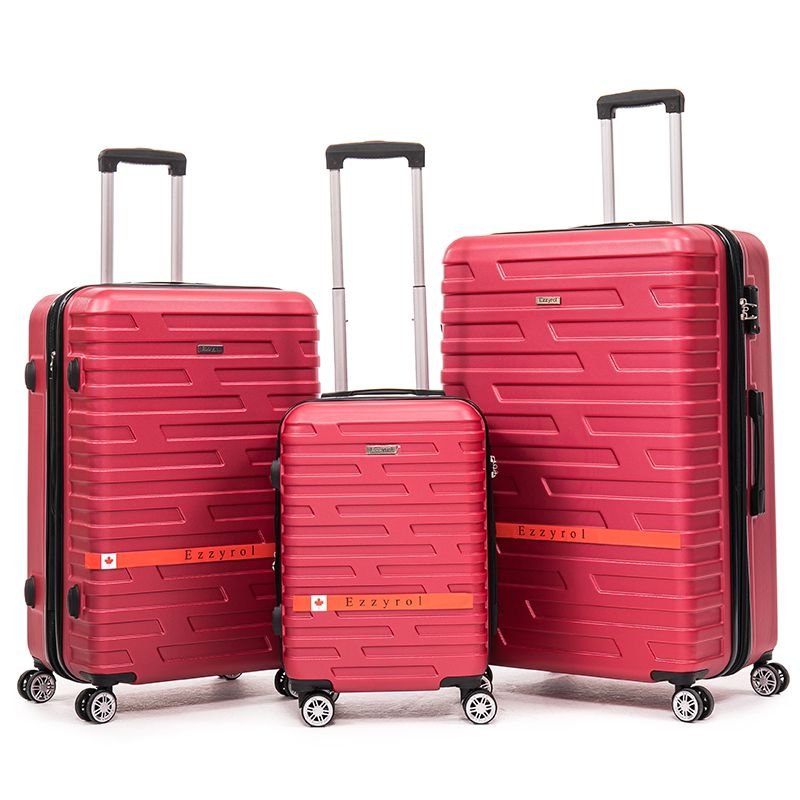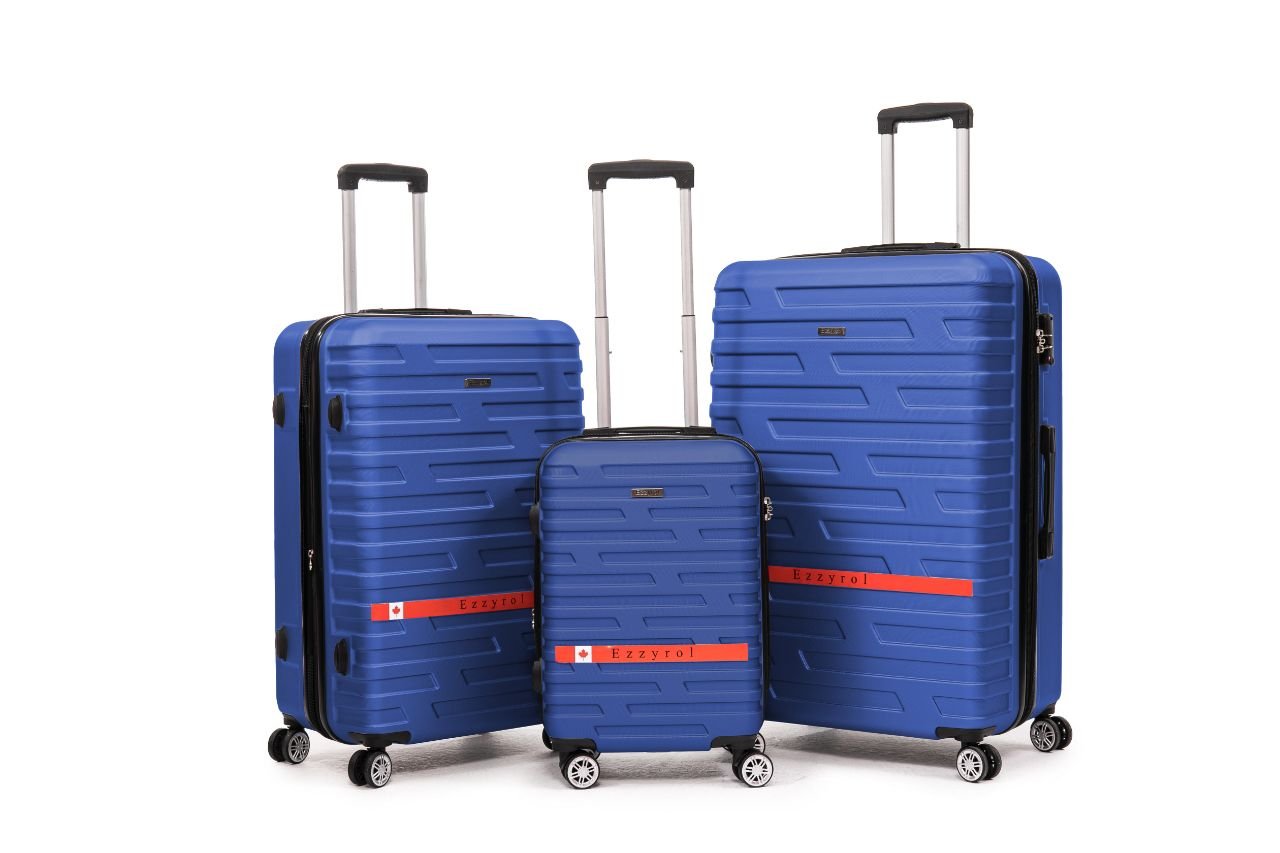 Travel with security and style using the EZZYROL BLD 115 hard sided 3-piece luggage set. Featuring built-in TSA combination locks, expandable compartments, durable nylon zippers, and 8 smooth spinner wheels for easy maneuverability.